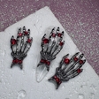 Велика фігурка у формі руки скелета з червоними камінчиками — ефектний вибір для створення сміливого та виразного дизайну. Поєднання металевого блиску й насиченого кольору камінців додає манікюру готичної естетики та характеру. У CoolSpace store ми пропонуємо декор, який допомагає виділитися та передати власний стиль через деталі.